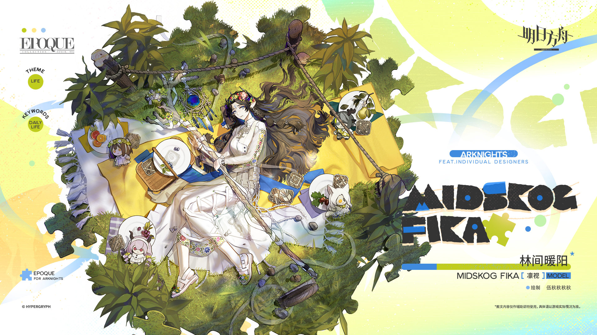 【アークナイツ大陸版】ヴァラルクビン専用コーデ「林間の暖かな日差し」 アークナイツ X Mastodon Bluesky Misskey Facebook コピー 2025.03.03 EPOQUEシリーズニュータイプ「林間の暖かな日差し」。 ヴァラルクビンが氷と雪が溶ける珍しい季節のために用意した祝祭の衣装。明るい青草と花の模様、サーミには美しい寓意が込められている。 彼女は凛とした未来を見つめるだけでなく、林間で憩う暖かな日差しの光も垣間見る事が出来る。