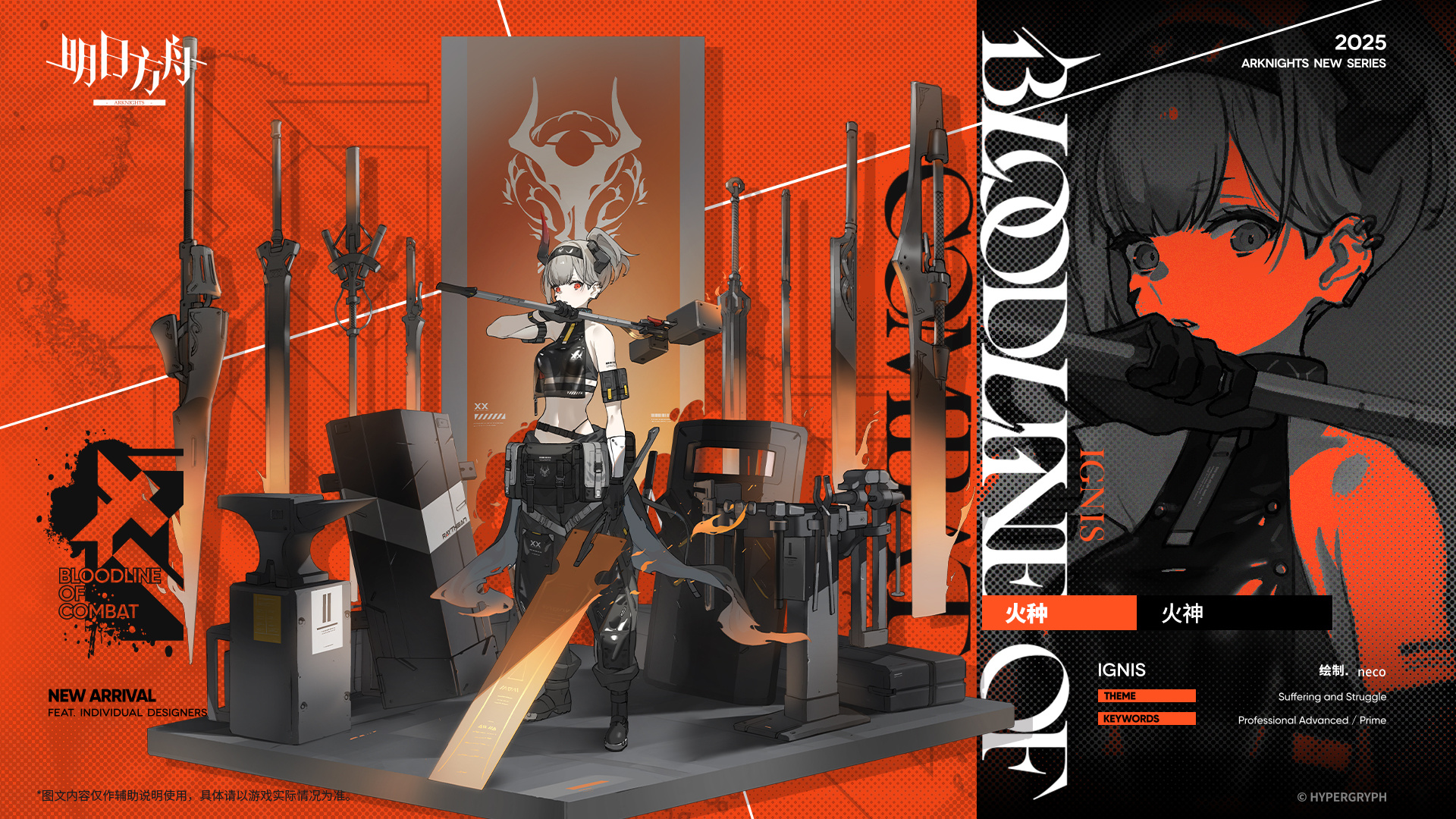 【アークナイツ大陸版】ヴァルカン専用コーデ「火種」 アークナイツ X Mastodon Bluesky Misskey Facebook コピー 2025.05.12 闘争の血脈シリーズ「火種」。 金鉄のぶつかる音が山々に響き渡る。彼女が鋳造した武器は火種と呼ばれる。武器に含まれる力が天地万物に火を着ける事が出来るからだ。 「ここはラケダイモンの宝庫であり、私の工房でもある。主達を殺せる武器が欲しいのか。少し時間をくれ」