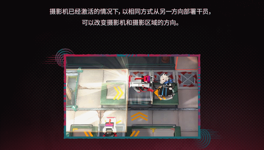 カメラがアクティブとなっている状態で同じ方法で別の方向からオペレーターを配置すると、カメラと撮影領域の方向を変更する事が出来る。