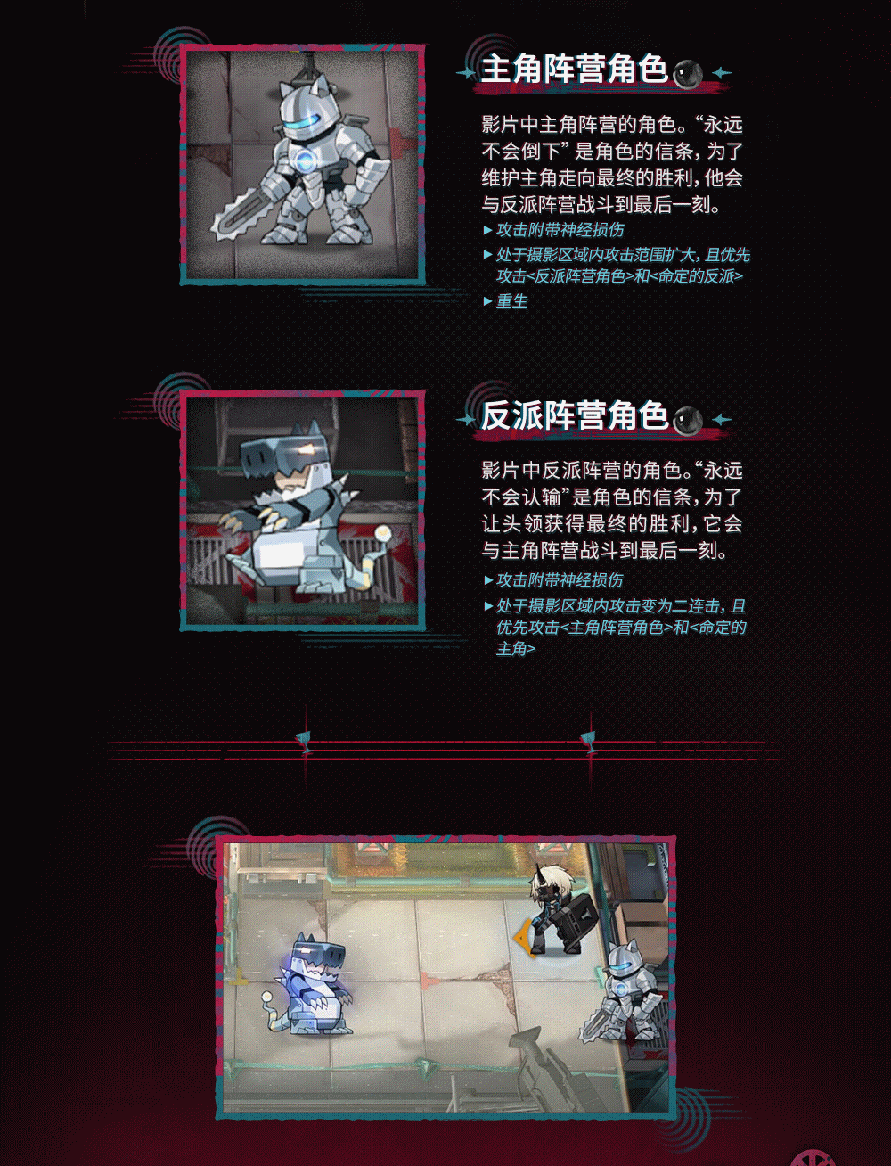 - 撮影エリア内では攻撃範囲が拡大。「悪役キャラ」と「宿命の敵」を優先的に攻撃する。