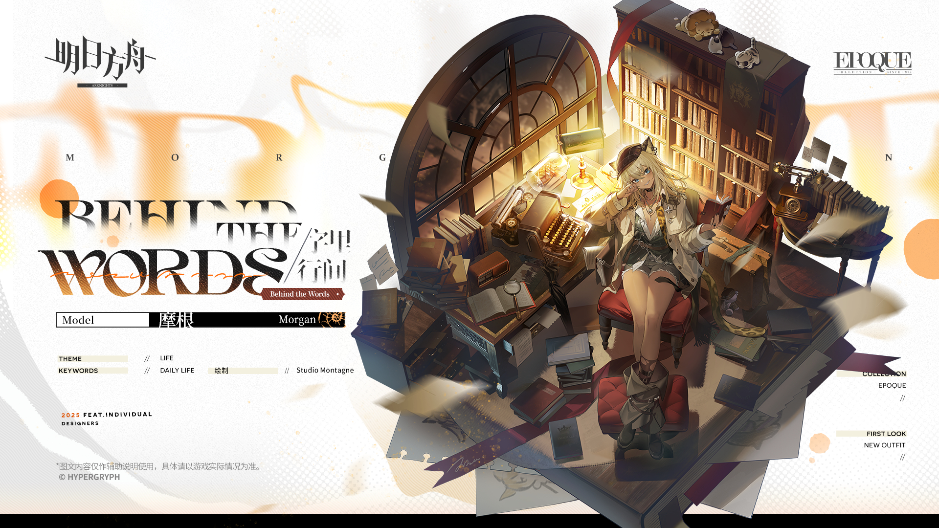 【アークナイツ大陸版】モーガン専用コーデ「字の内の行間」 アークナイツ X Mastodon Bluesky Misskey Facebook コピー 2025.06.22 EPOQUEシリーズニュータイプ「字の内の行間」。 モーガンが新作を構想した時の副賞。古典的なシルエットのウィンドブレーカーと肌に合うインナーは視覚的な衝突を生み出し、厳粛な態度と反逆的な個性の間にある矛盾は調和が取れない訳では無い事を示している。 「回顧録以外にもたまに作り話を書いているんだけれど、見てみてよ。でもほら――いくら酒で漬け込んだとしても、この人物達がやっている事、見覚えあるでしょ?吾輩がどう書いても、いつもあの子達が浮かんできてしまって本当に困ってるんだよ!」