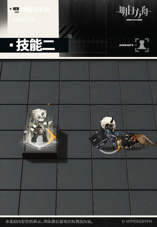 - スキル2:スキル発動後、攻撃力上昇、オペレーターを治療時、数秒以内にダメージを受けると、リジェネを付与。