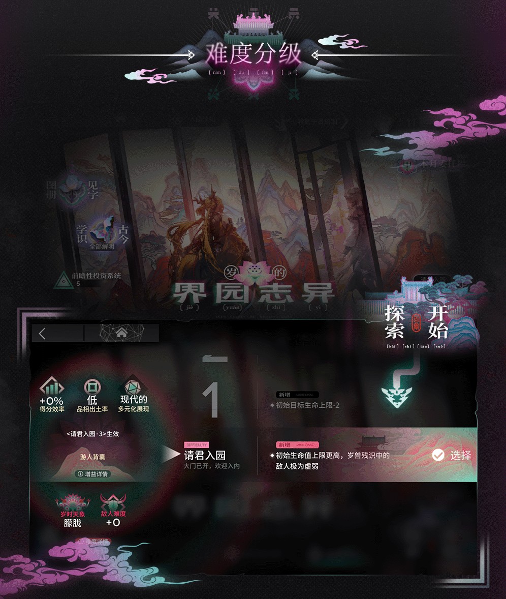 【歳の界園志異】では15の難易度レベルを提供、難易度を1つクリアする度に次の難易度が解放されます。