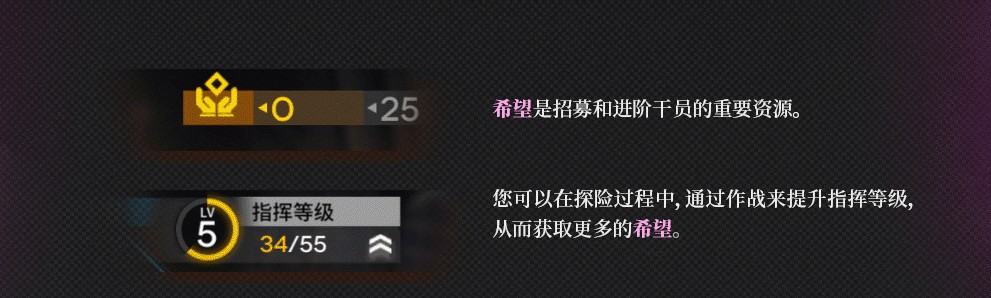 探索中は作戦を通じて指揮レベルを上げる事でより多くの希望を得る事が可能です。