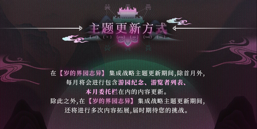 「歳の界園志異」更新期間中は初月を除いて「遊園記念」「遊園票」「今月の依頼板」を含む更新が行われます。