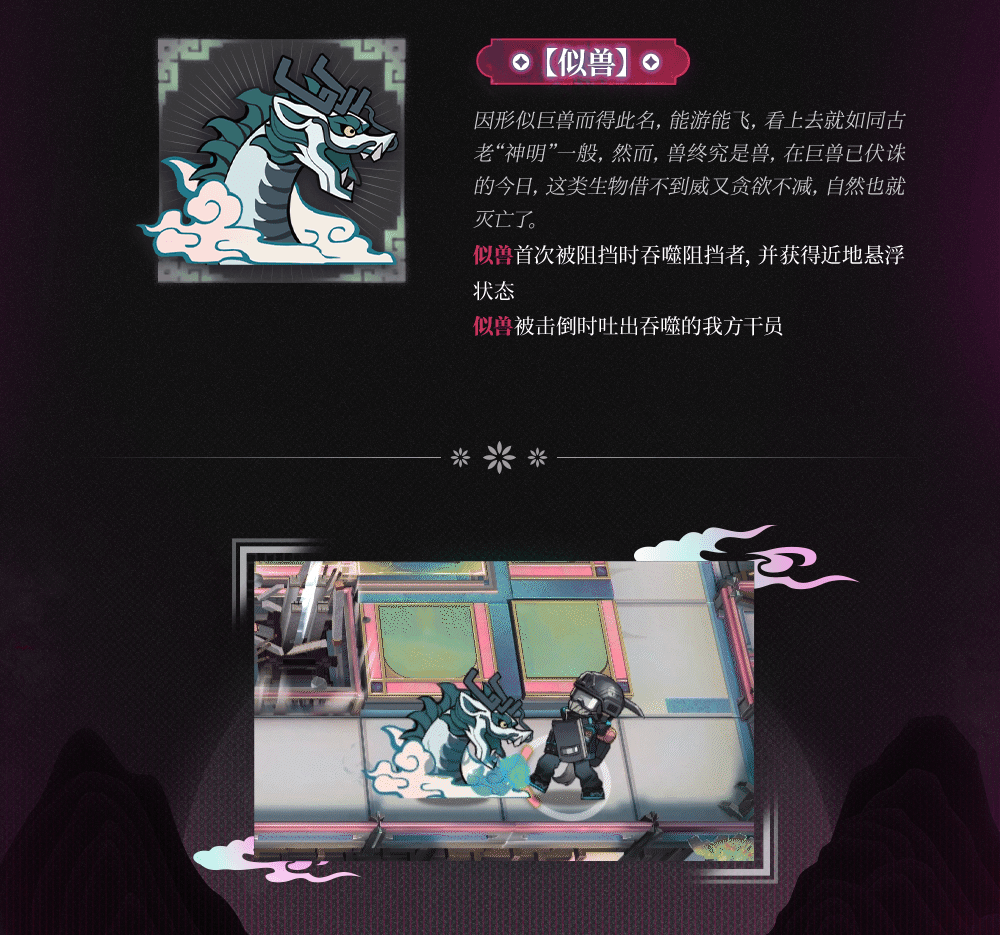 - 似獣が撃破された時、飲み込んでいたオペレーターを吐き出す。