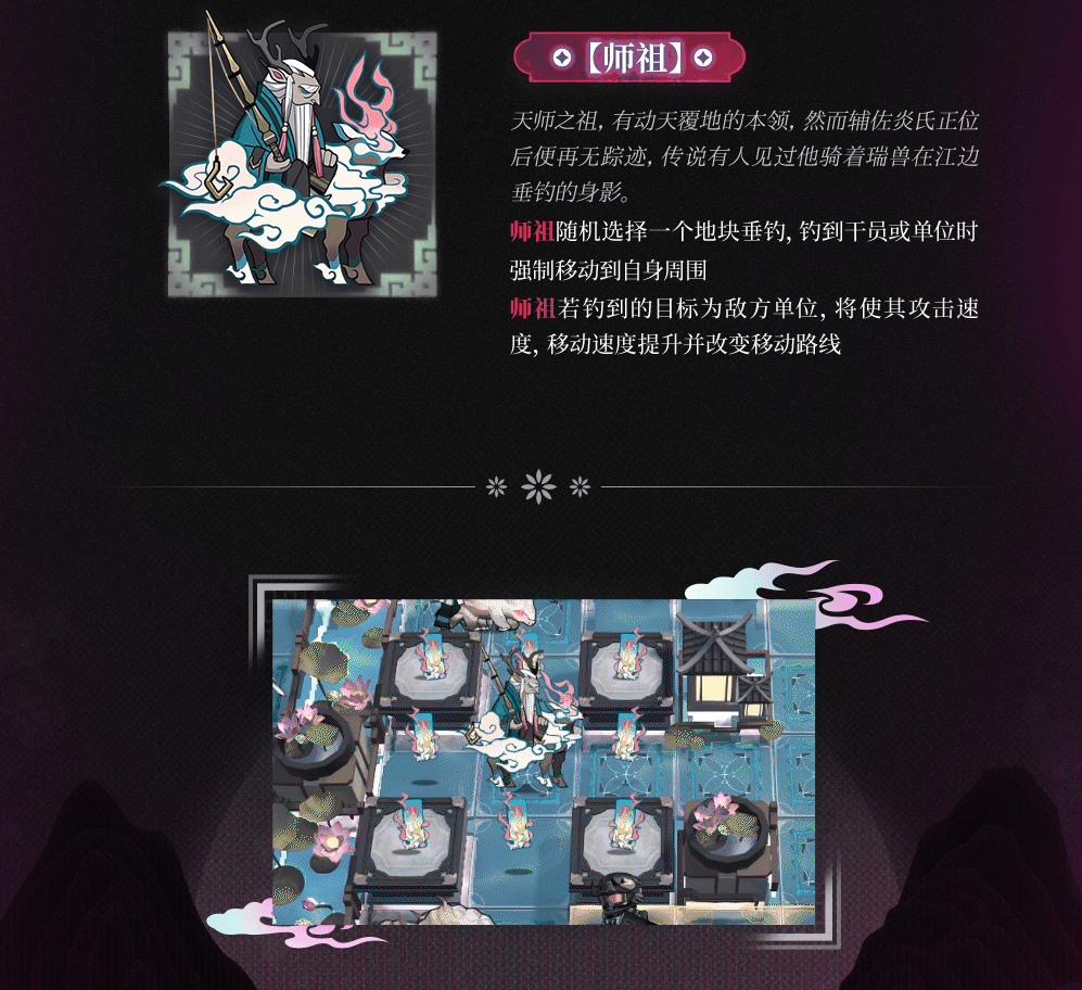 - 師祖は無作為に釣りを行い、オペレーターやユニットを釣り上げた時、強制的に自身の周囲に移動させる。