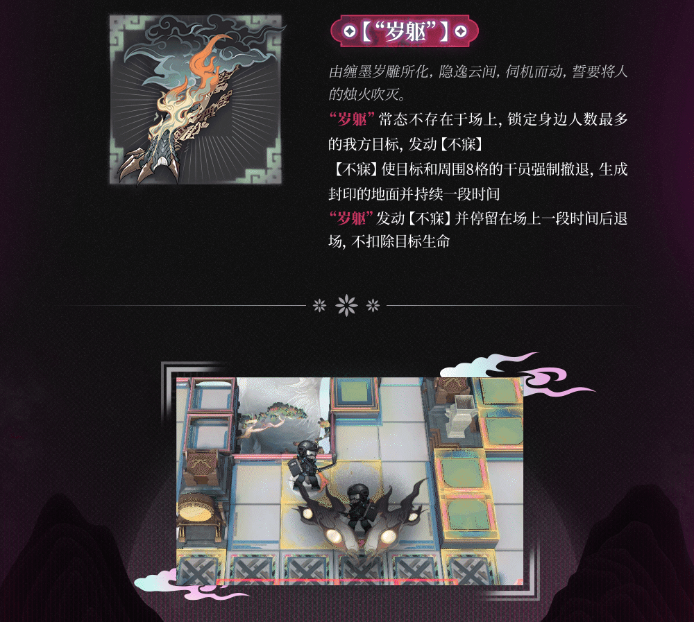 - ”歳駆”は通常ステージ上には存在せず、周囲に最も味方が多い味方を目標に設定し、【不寐】を発動する。