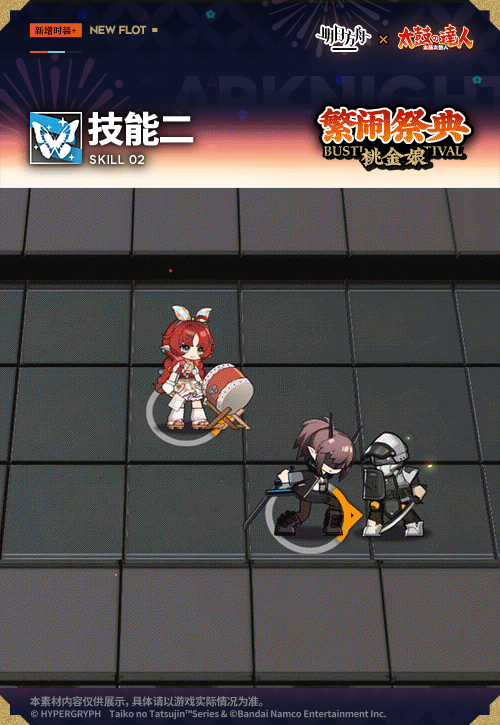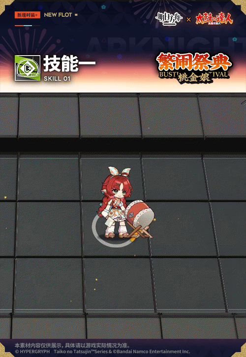 【アークナイツ大陸版】テンニンカ専用コーデ「にぎやかなお祭り」 アークナイツ X Mastodon Bluesky Misskey Facebook コピー 2025.07.21 太鼓の達人コラボ「賑やかなお祭り」。 この盛大なお祭りで、テンニンカはゲームの得点にはこだわらずにバチを振り回し、音楽に合わせて太鼓の面を打って会場を沸かした。ドンドン――カッ! 「さっきアタシが演奏したのは全ランダムオニ★10の『クラポルポルス』!どう、びっくりしたでしょ!」 テンニンカはスクリーン上に映る大きなフルコンボ全良判定の成績を指さして自慢をした。