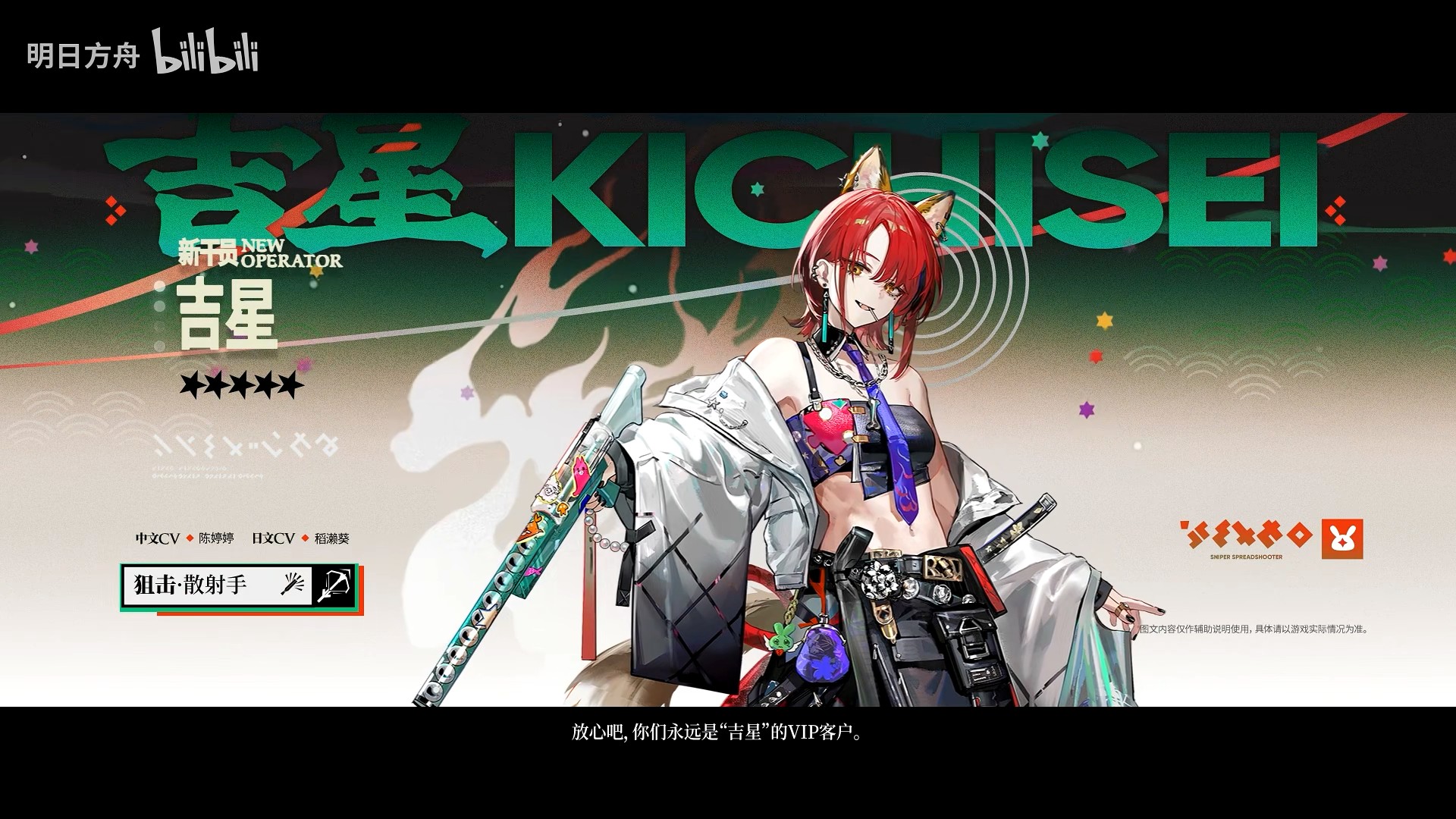 期間中、プレイヤーは今回選抜されたオペレーターの範囲内で2体の★6オペレーターと3体の★5オペレーターを選択、今回の【中堅オーディション】スカウトの出現確率が上昇したオペレーターとなります。