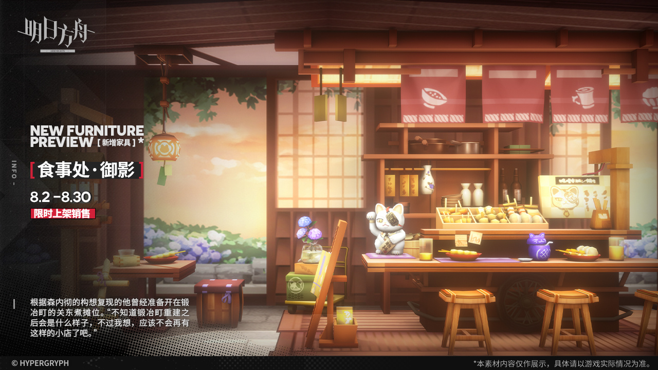 【アークナイツ大陸版】家具テーマ「食事処·御影」 アークナイツ X Mastodon Bluesky Misskey Facebook コピー 2025.08.05 森内徹の構想によって再現されたかつて鍛冶町にあった彼のおでんの屋台。 「鍛冶町が再開発されたらどうなるんかは分からんけれど、もうこんな小さな店は無いやろな」