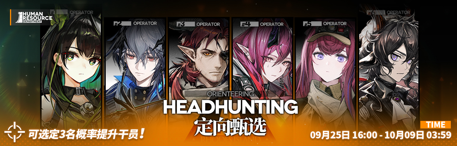 期間中、表示されるオペレーターの中から3人の星6オペレーターと3人の星5オペレーターを選択、セレクトスカウトでは星6は選択したオペレーターのみ、星5は60%の確率で排出されます。