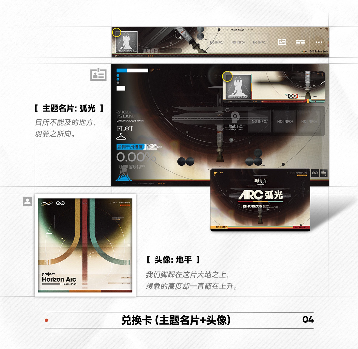 - 専用コーデ:テラ大陸調査団「街へ飛び出せ」、リィン「崖高く夢遠し」、フランカ「深緑にかかる虹」、アーミヤ「星辰に触れて」、スズラン「春陽讃歌」、ロックロック「歌の前に」、九色鹿「古往今来の月」