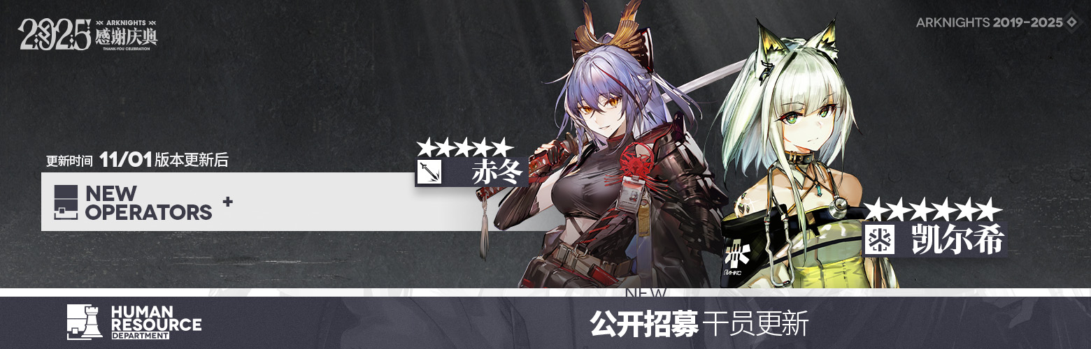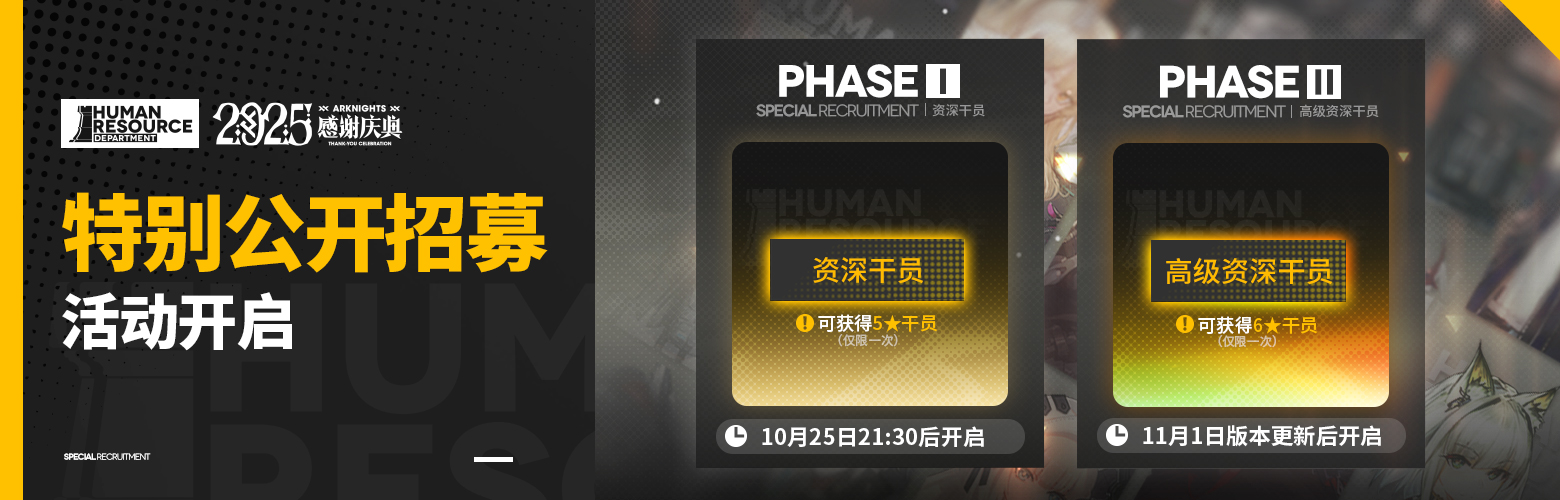 期間中、プレイヤーは今回選抜されたオペレーターの範囲内で2体の★6オペレーターと3体の★5オペレーターを選択、今回の【中堅オーディション】スカウトの出現確率が上昇したオペレーターとなります。