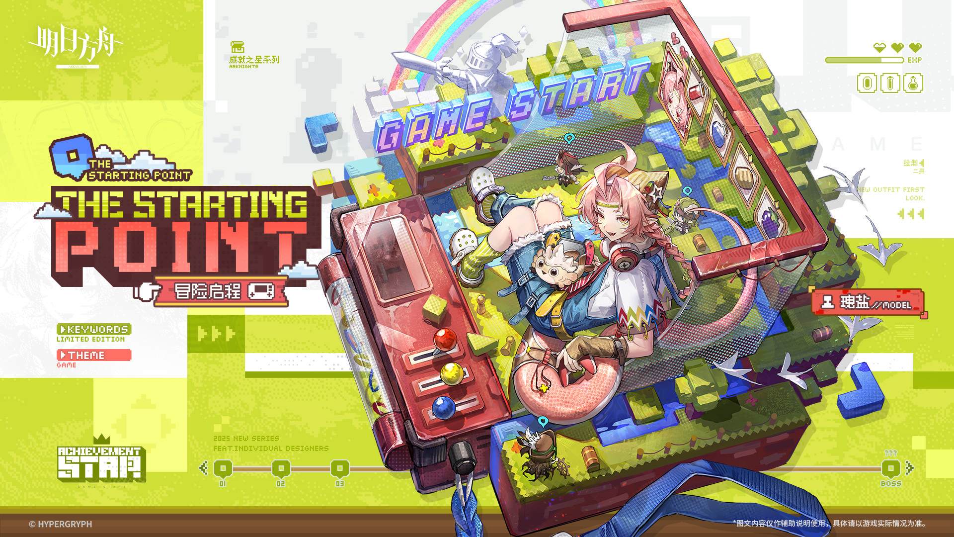 【アークナイツ大陸版】ローズソルト専用コーデ「冒険の始まり」 アークナイツ X Mastodon Bluesky Misskey Facebook コピー 2025.12.17 Achievement Starシリーズ「冒険の始まり」。 ローズソルトがアドベンチャーゲームをプレイしている時の衣装。 ヘッドフォンを付けてゲーム機の前でくつろぐローズソルトはファンタジー世界で財を成す準備を整えた。 ――HPは満タン、消耗品も十分。迷う必要は無し、宝物を目指して出発しよう!