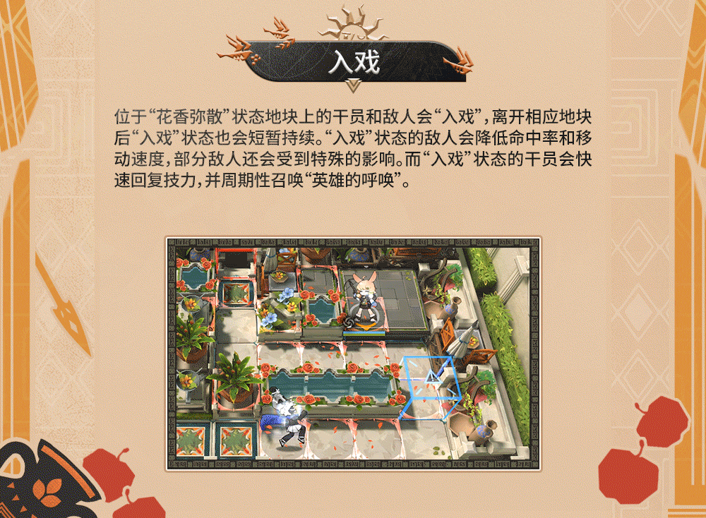「花香拡散」状態のエリアにいるオペレーターと敵は「没入」状態となる。