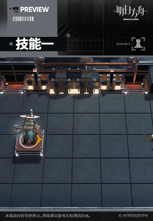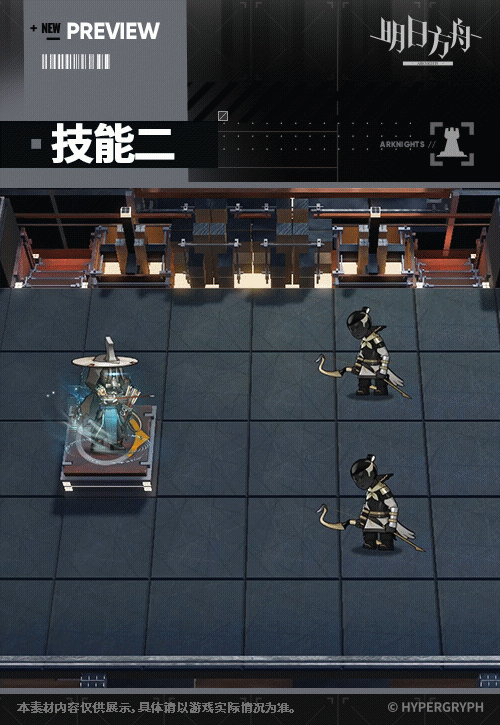 - スキル2:スキル発動後、攻撃力が上昇、追加でもう1体の敵を攻撃。スキル発動中、攻撃範囲内にいるHPが半分以下の敵に対して、攻撃力の一定割合の物理ダメージを1回与え(短い間隔あり)、各敵に最大1回の追加の物理ダメージを受ける。