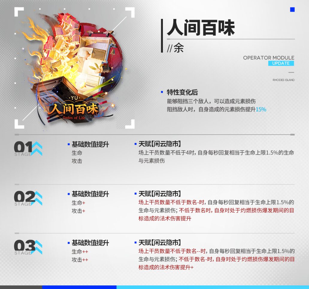 | 敵を3体までブロック 元素損傷を与える能力を持つ。 ブロック時、自身が与える元素損傷+15% |