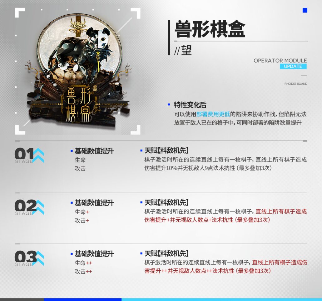 | 配置コストがより低い罠を使用可能、敵のいるマスに罠配置不可、同時配置可能な罠の数が上昇 | ||