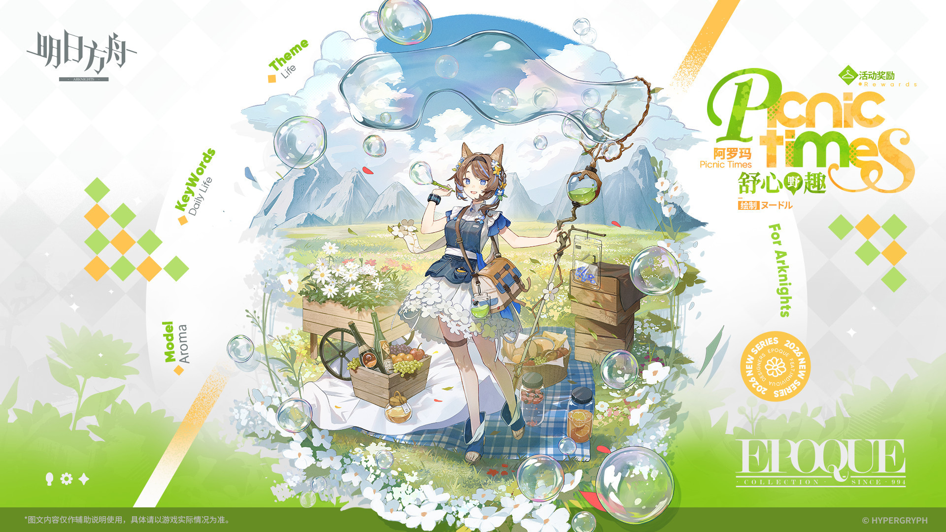 【アークナイツ大陸版】アロマ専用コーデ「心地よいピクニック」 アークナイツ X Mastodon Bluesky Misskey Facebook コピー 2026.04.26 EPOQUEシリーズの新作「心地よいピクニック」。 アロマがピクニックに出かける時の装い。 軽やかで上品な白いレースにデニムのミニエプロンを合わせ、温かな陽光を浴びる少女をいっそう魅力的に引き立てている。 ピクニックシートを広げ、蜂蜜とレモンティーを並べる。 あとは、彼女が吹いたシャボン玉を、穏やかな微風の中で躍らせ続けよう。