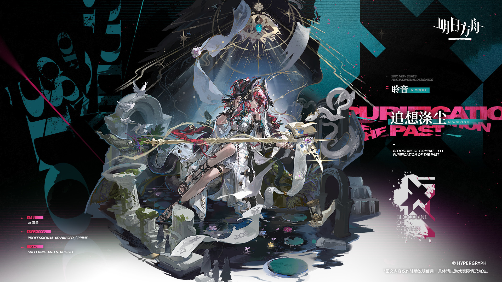 【アークナイツ大陸版】グレースベアラー専用コーデ「追想の滌塵」 アークナイツ X Mastodon Bluesky Misskey Facebook コピー 2026.04.27 闘争の血脈シリーズ「追想の滌塵」。 いかなる歴史も、やがては雲煙と化す宿命から逃れることはできない。 過ぎ去りし数千数万の年月は一握の土となり、グレースベアラーは忘れ去られた水辺に寄り添う。 ただ、過ぎ去った日々の喧騒を、すべて洗い流すことを願って。 抹消された名を誰が覚えているのだろう。誰が潰え去った歳月を見守るのだろう。 誰が最も誠実なる希望を抱き、誰が人々のために耳を傾け続けるのだろうか。