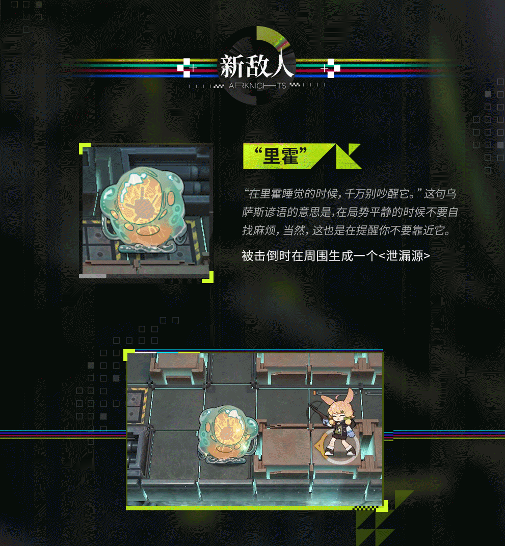 - 最も近い<漏洩源>へと移動し続け、<漏洩源>を通過するたびに巨大化、撃破された時に与えるダメージが増加。最大2回まで巨大化する