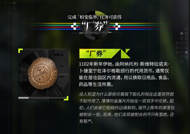 1102年の年明け、ゼルグラードにおいてアナトリー・スヴェトラノフ・プチェリーニンにより発布された代用貨幣。通常は居住区内でのみ流通し、日用品、食料、医薬品といった生活必需品との交換に用いられる。